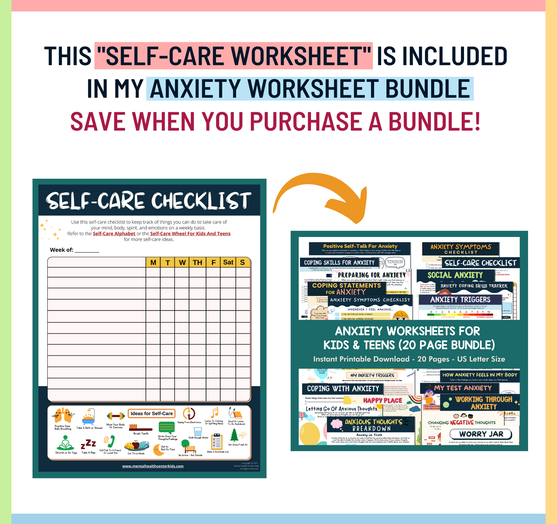 After filling out the checklist each week, kids and teens can take a few moments to reflect on how a self-care habit has helped them. We recommend keeping the checklist in a visible location so that they will be reminded to complete it daily.