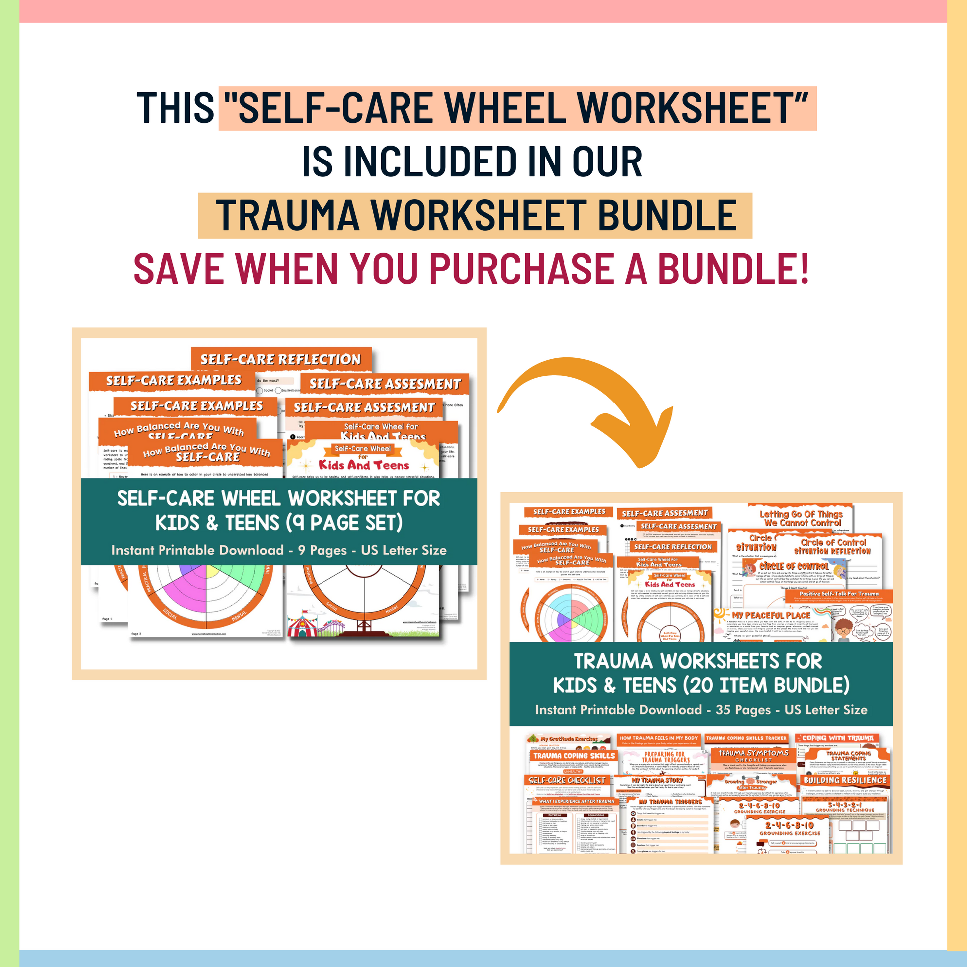 These worksheets pair well with our visually appealing Self-Care Wheel for Kids and Teens handout.