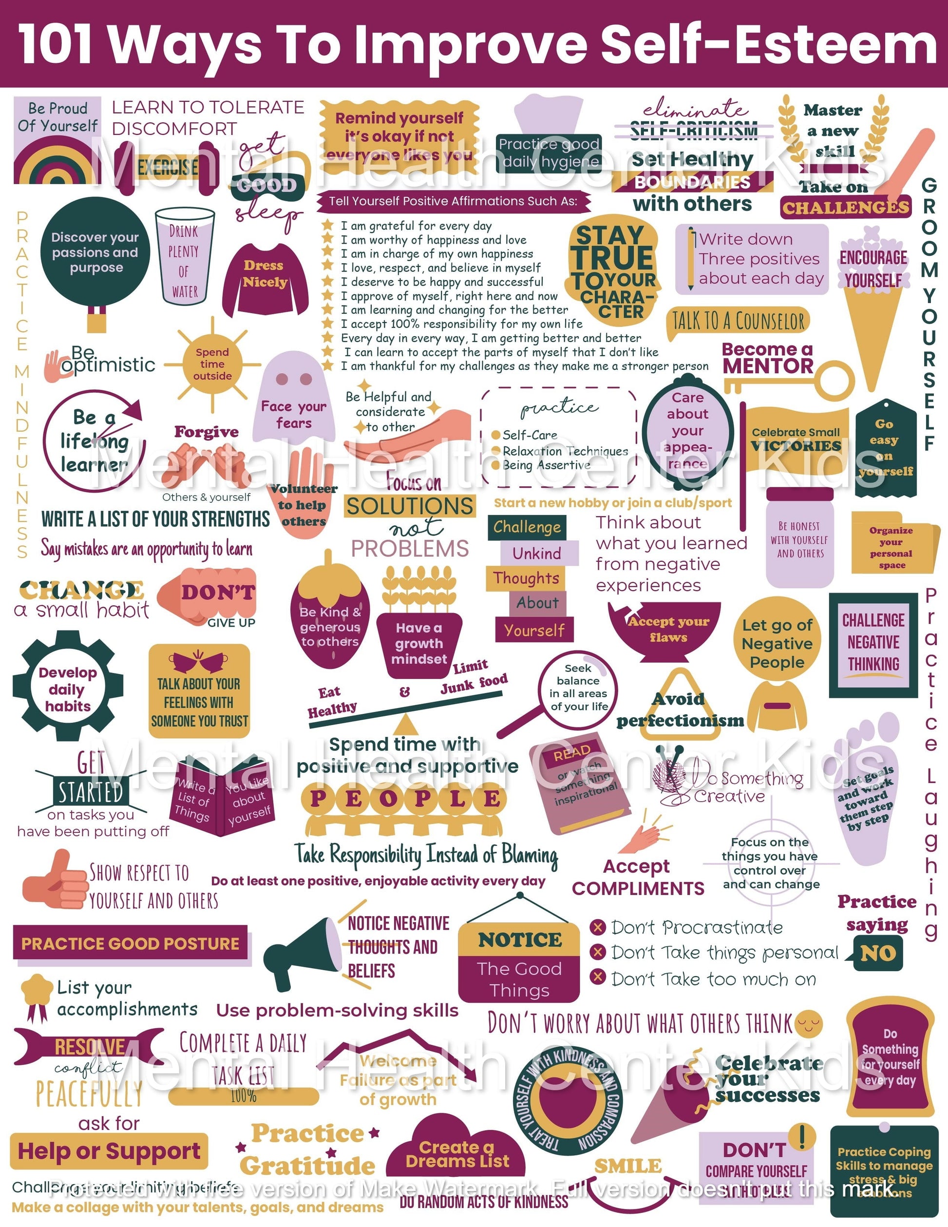 - 101 Ways to Improve Self-Esteem Printable Poster