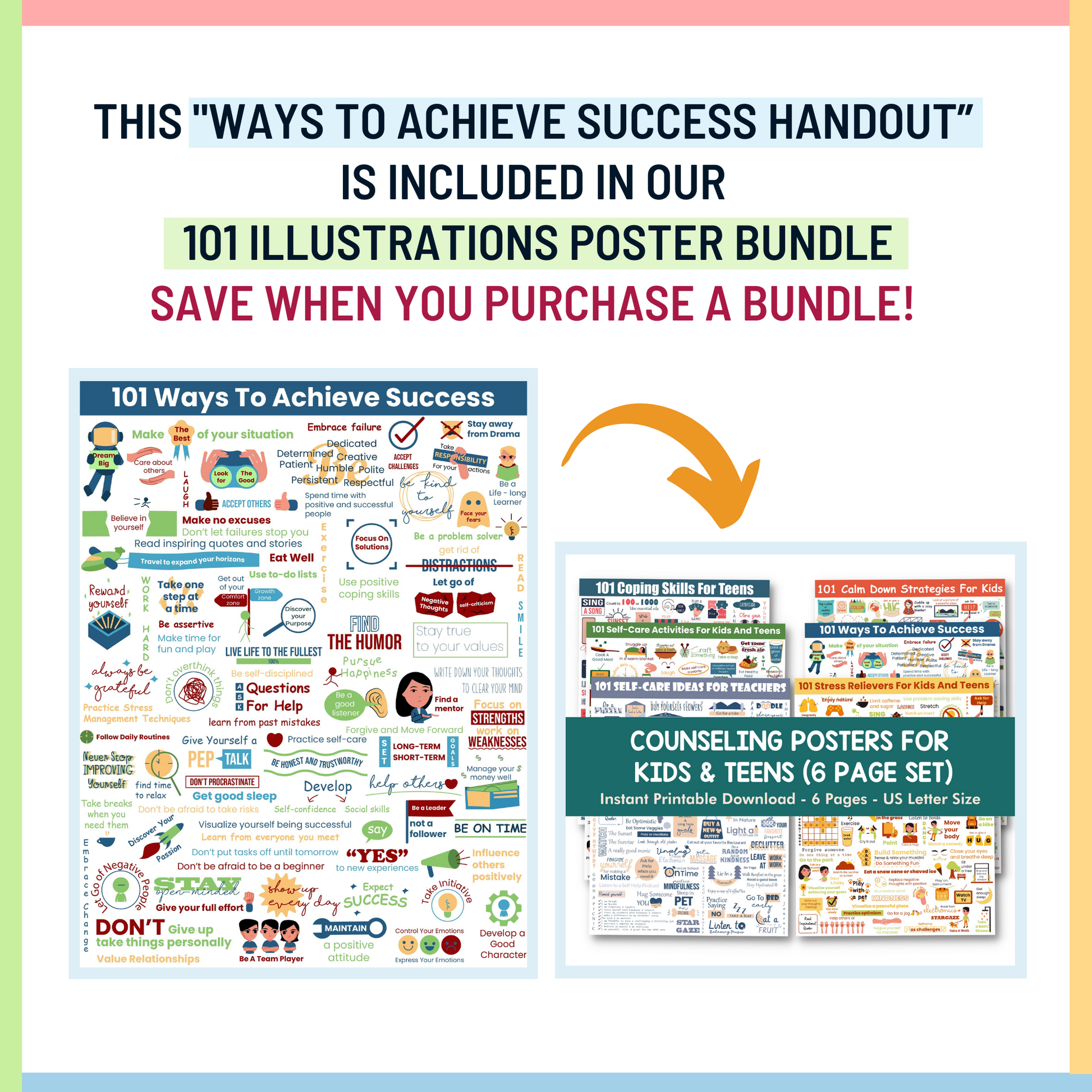 Some of the success strategies found on the poster include eating well, reading inspiring stories, practicing gratitude, and forgiving and moving forward. You may give this poster as a helpful handout to your patients and students or post it on the wall of your classroom for everyone to see.