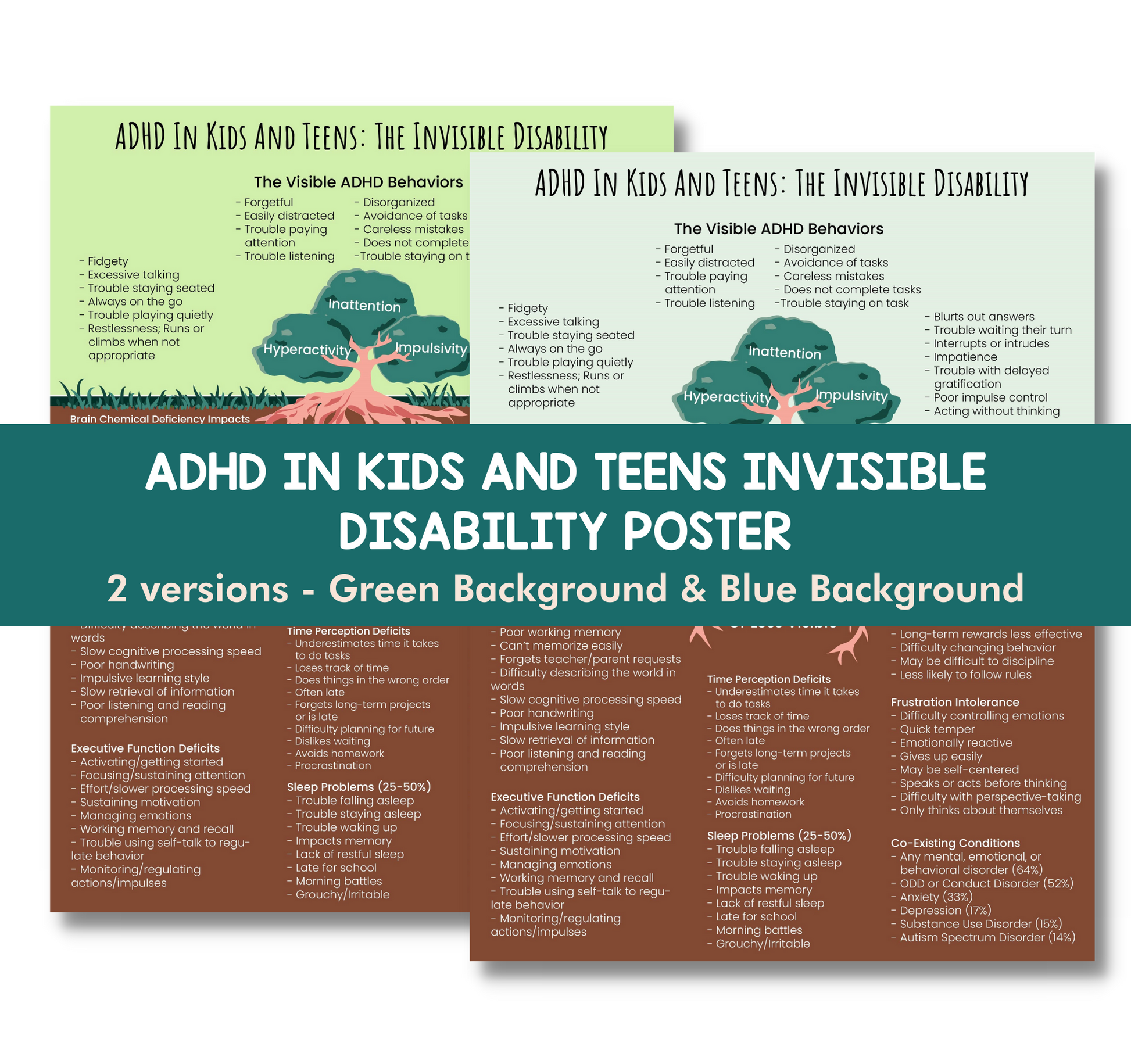 These ADHD Infographic Handouts contain information about this neurodevelopmental disorder, coping skills, and positive traits that kids and teens can harness to their advantage. You will also find information about natural ADHD treatments for parents and healthcare professionals who are supporting kids and teens with ADHD.