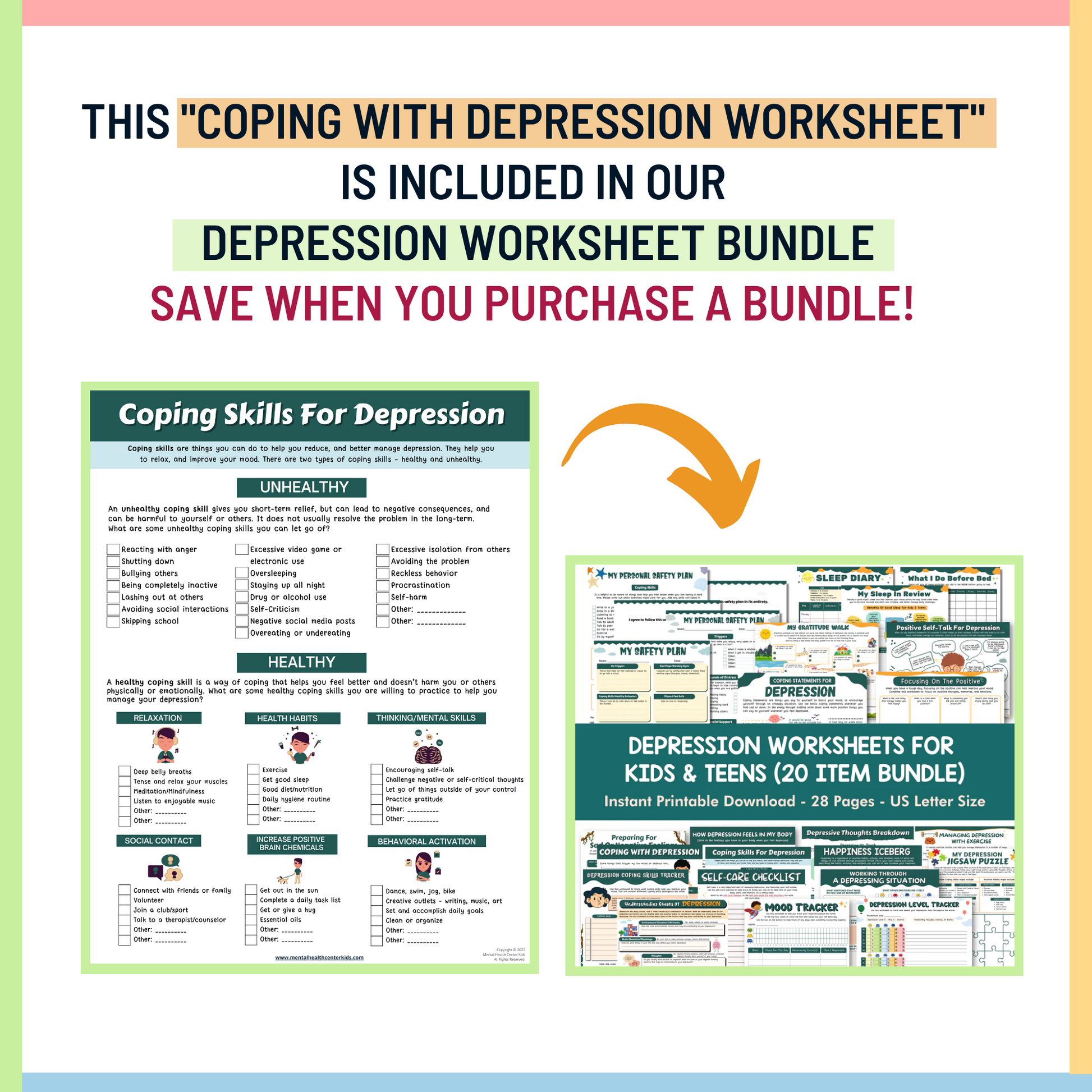 This worksheet pairs well with our Depression Coping Skills for Kids or Coping Skills for Teen Depression handout.