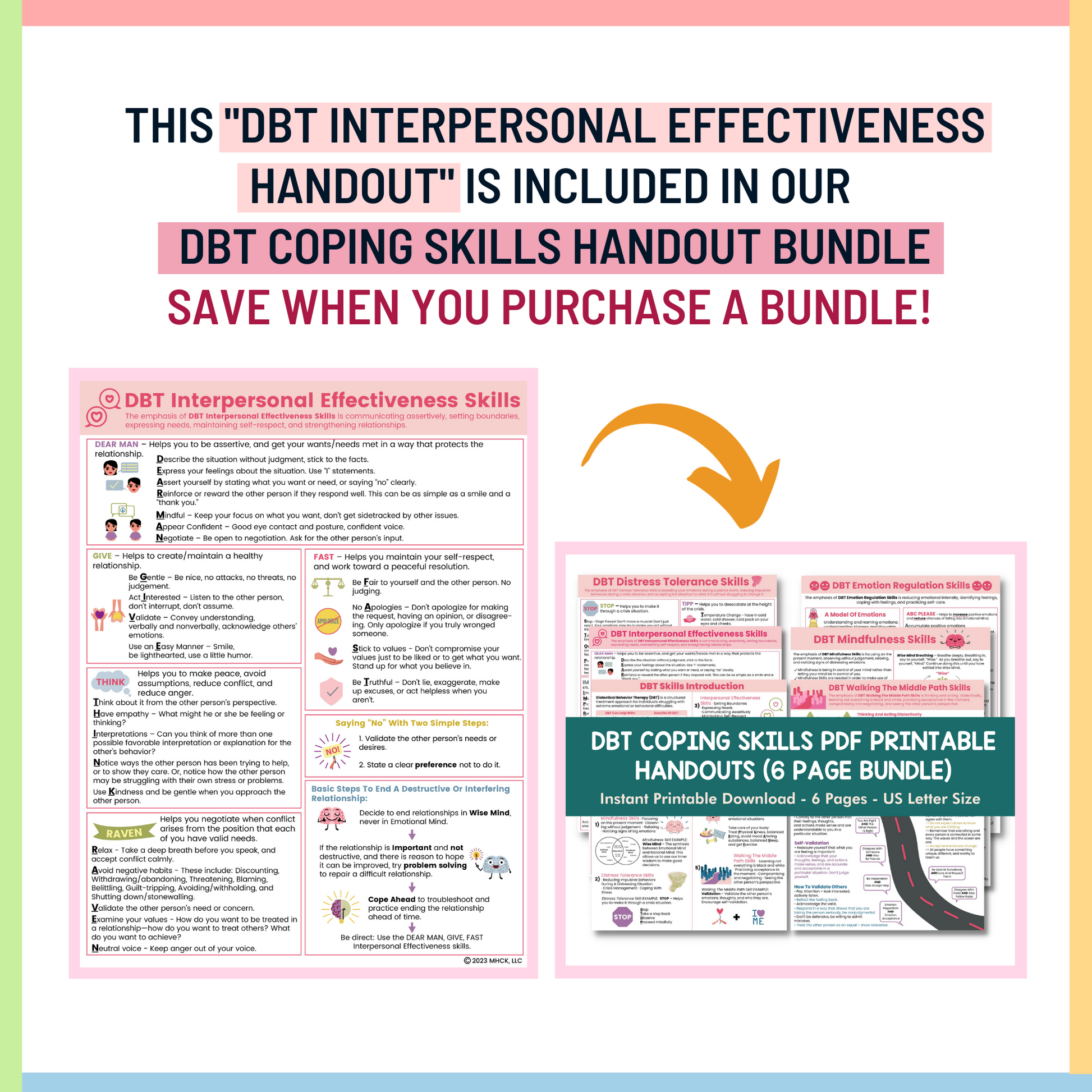 Use this handout to supplement your DBT program or help a child, teenager, or young adult develop interpersonal effectiveness skills by having a visual reminder.